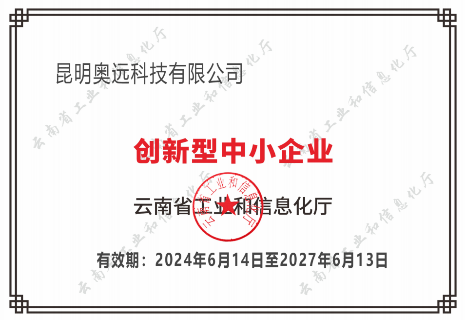 昆明奧遠科技有限公司榮獲“創(chuàng )新型中小企業(yè)”稱(chēng)號